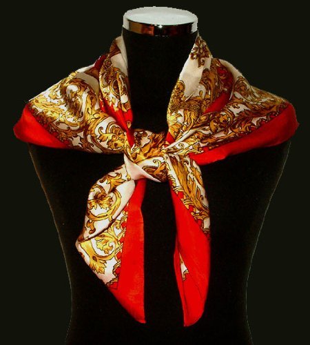 LORENZO CANA - Barock Muster Seidentuch gold rot weiss Tuch Seide 100x 100 cm - 89002