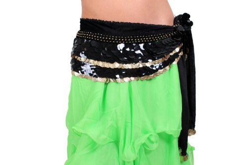 Münzgürtel Bauchtanz Hüfttuch Gürtel Pailletten Perlen Tanz Schwarz / Gold Feature