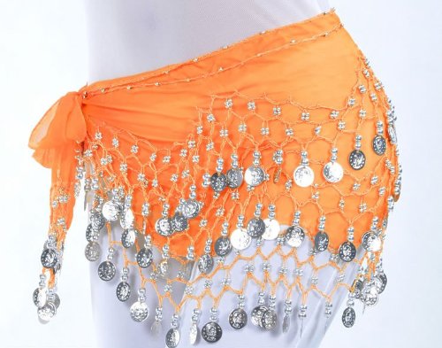 Münzgürtel Bauchtanz Hüfttuch Gürtel Tanz Orange / silber
