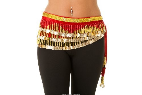Zick-Zack Münzgürtel Bauchtanz Hüfttuch Gürtel Tanz Rot Feature